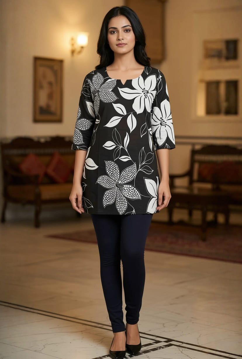 Black & White Floral Kurti