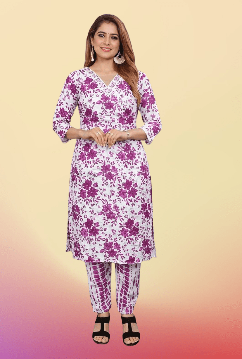 Floral Cotton Kurti & Pant Set (Pakistani Neck)