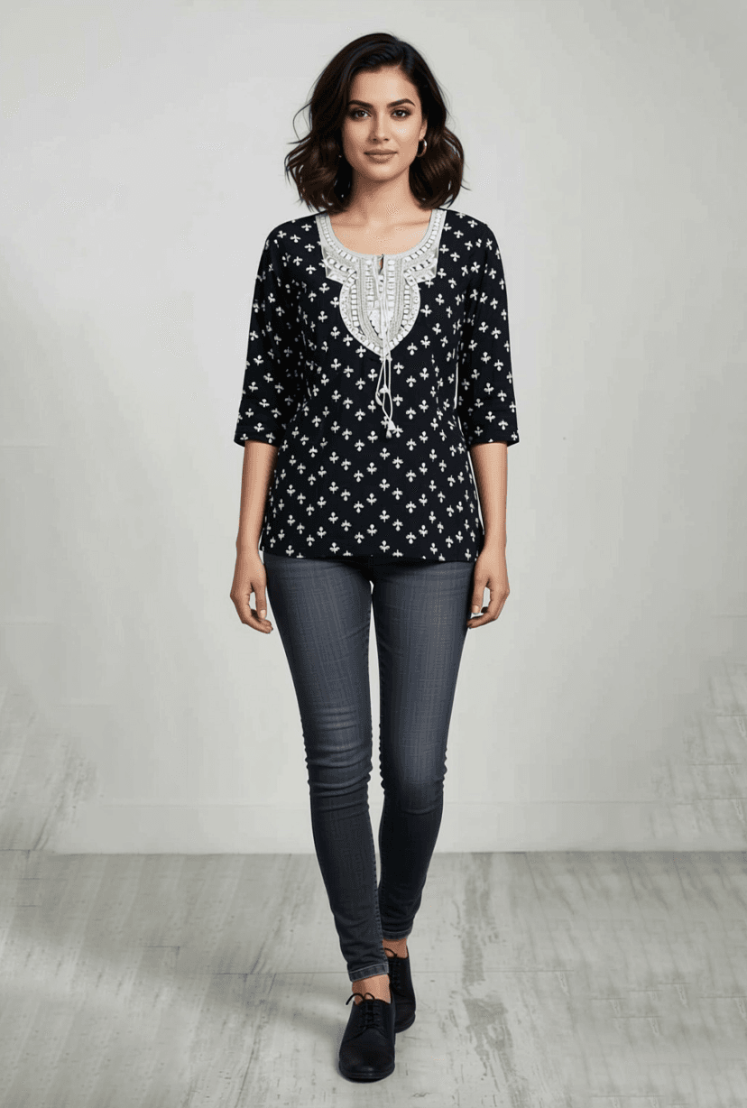 Embroidery Work Black Short Kurti