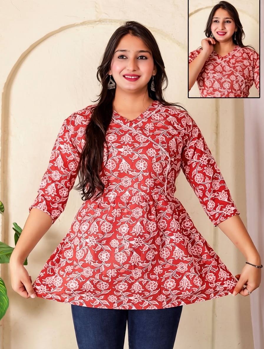 Add a dash of contemporary charm to your ethnic wardrobe with this chic women’s kurti. Featuring a modern cut and a comfortable fit, this kurti is perfect for pairing with jeans, palazzos, or skirts. Crafted from soft, breathable fabric, it offers all-day comfort with stylish appeal. Whether you’re heading to college, work, or a casual outing, this short kurti brings effortless elegance to your everyday look.