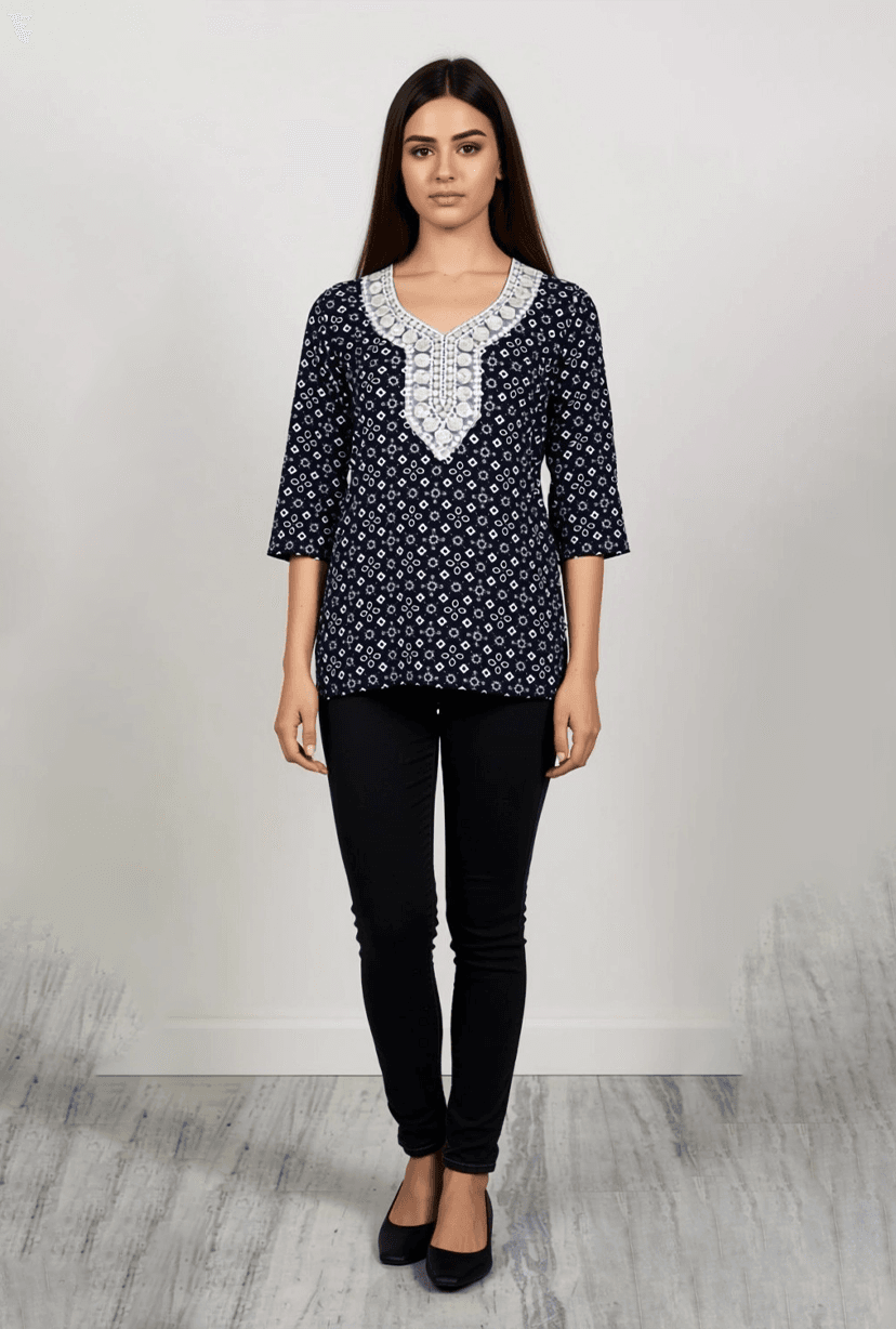 Add a dash of contemporary charm to your ethnic wardrobe with this chic women’s kurti. Featuring a modern cut and a comfortable fit, this kurti is perfect for pairing with jeans, palazzos, or skirts. Crafted from soft, breathable fabric, it offers all-day comfort with stylish appeal. Whether you’re heading to college, work, or a casual outing, this short kurti brings effortless elegance to your everyday look.